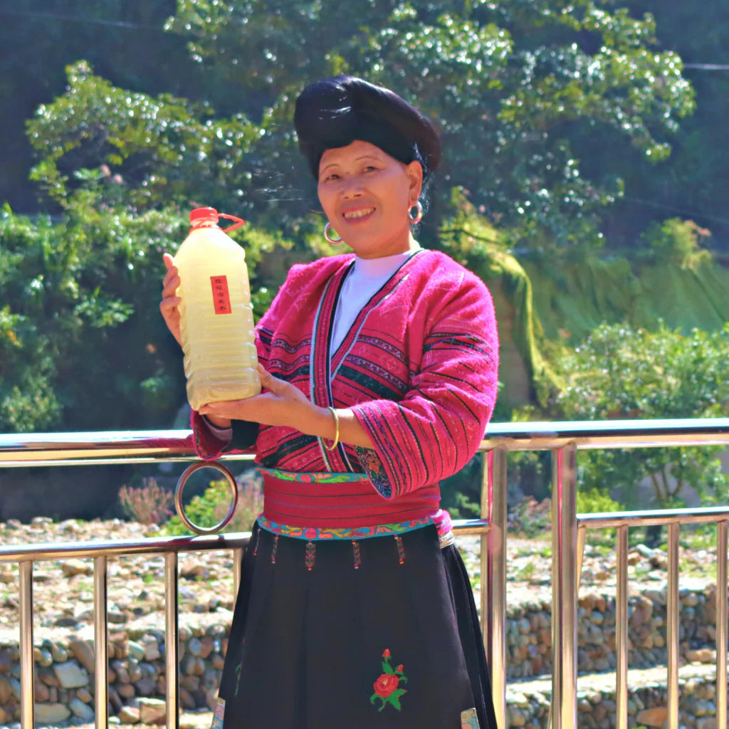 Afkomstig uit de eeuwenoude tradities van de Red Yao-vrouwen in het dorp Longji in Zuid-China. Zorgvuldig gebrouwen met lokale kruiden in hun ongerepte omgeving, weerspiegelt dit unieke gefermenteerde rijstwater een rijk cultureel erfgoed en biedt het optimale haarverzorging, geheel in lijn met hun tijdloze gebruiken.